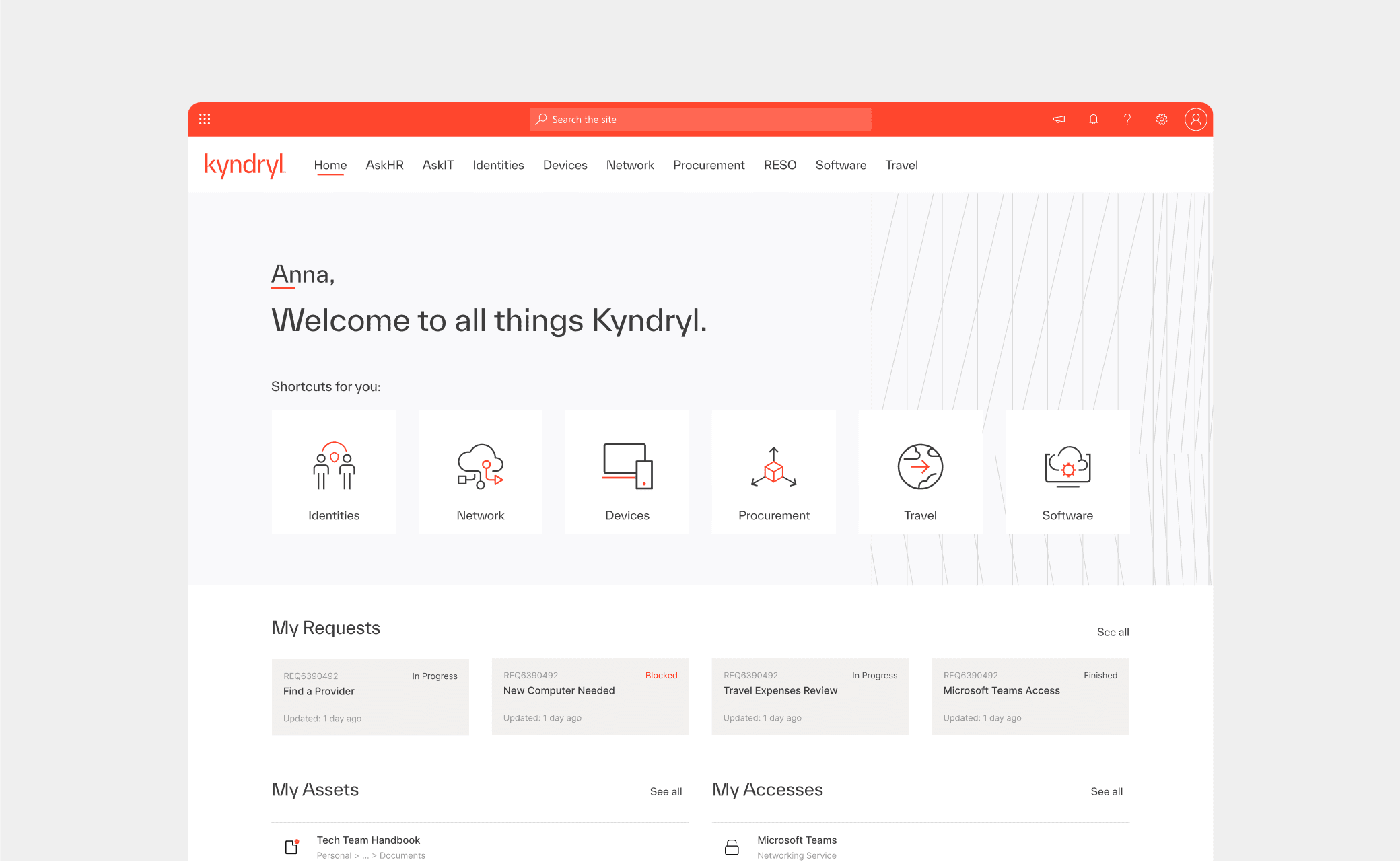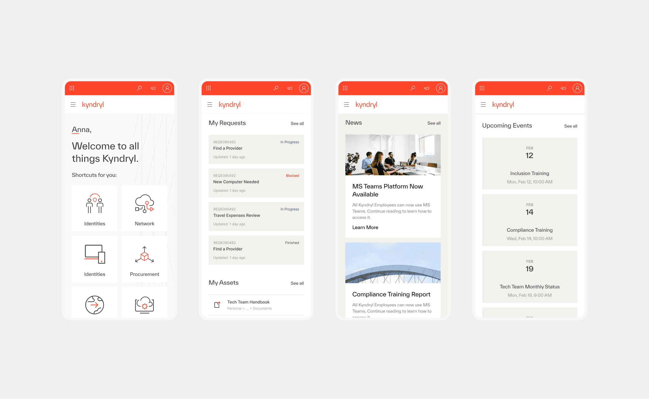 During the project, various parts of the employee portal (not only examples shown above) were re-worked and delivered to use for nearly 100,000 Kyndryl employees.