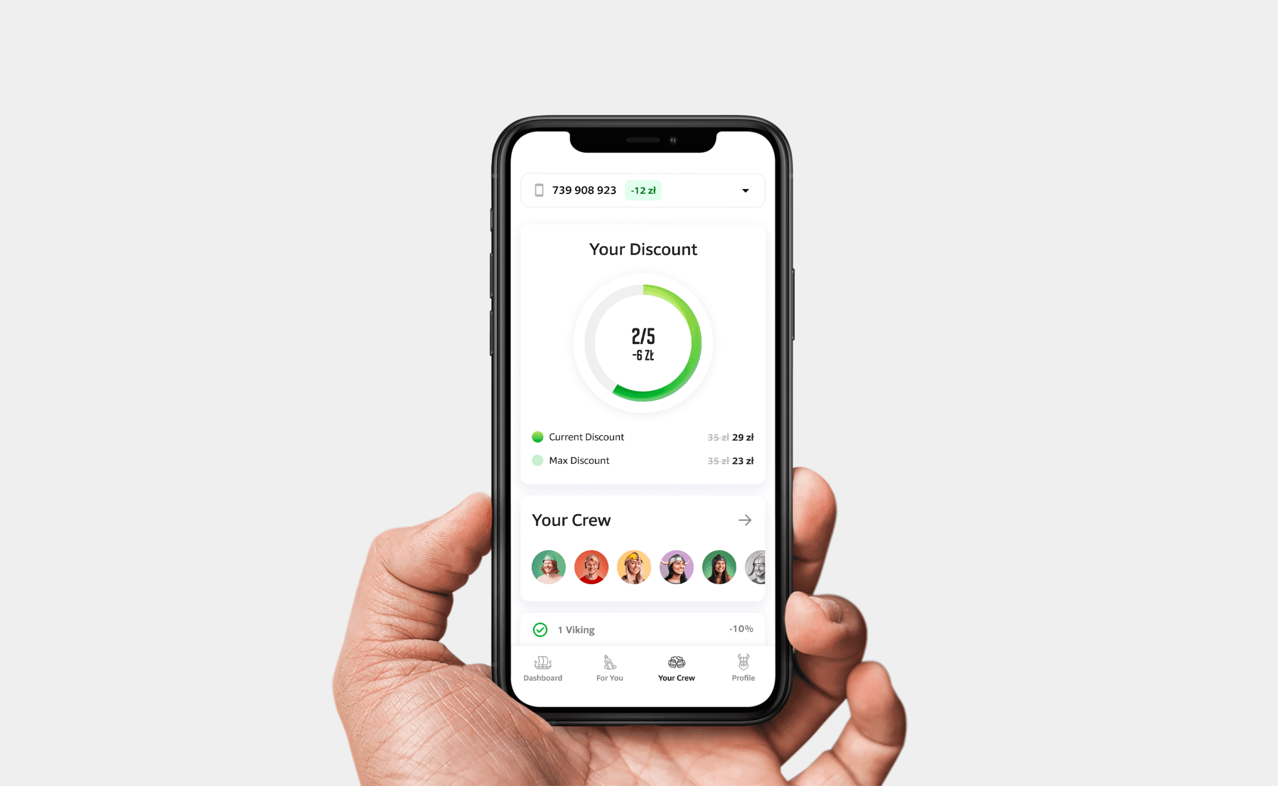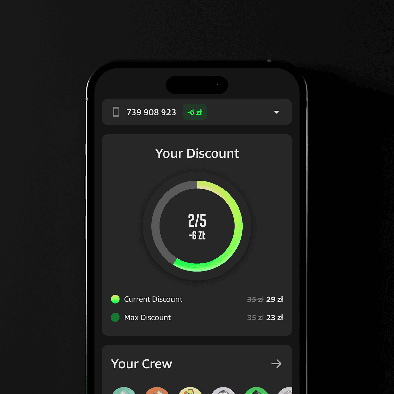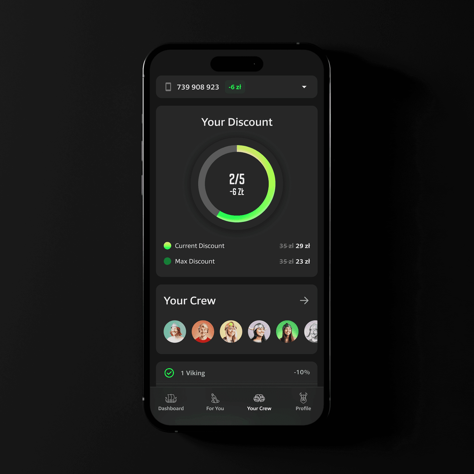 The main challenge of the project was to design a new dashboard summarizing all info about the user's discount status, people their invite to the app, their crew status, and much more.