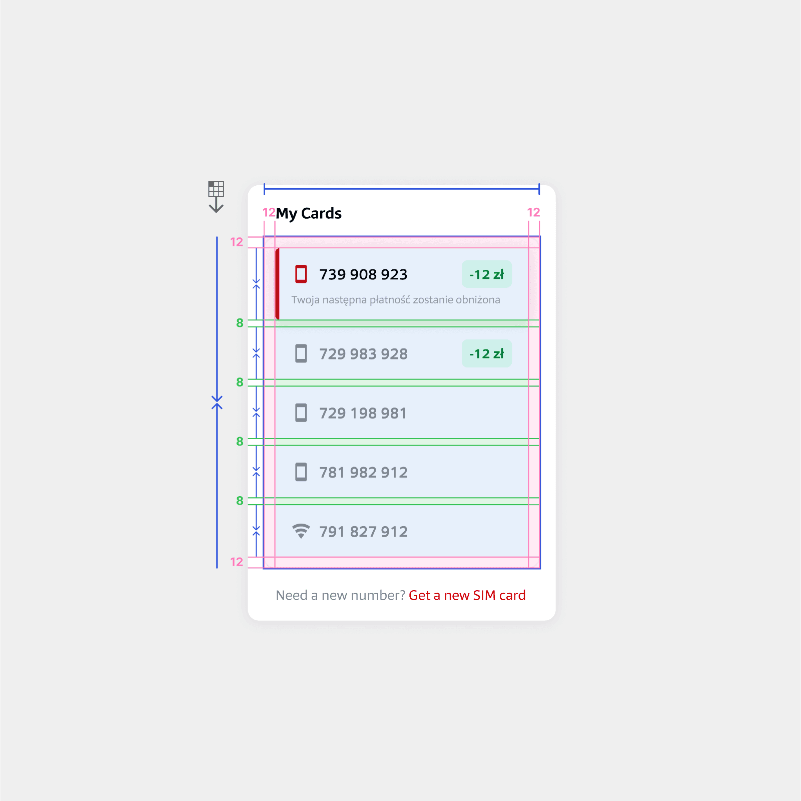 Apart from designing new features and flows, my role was to clean up the existing component base and set up a design system that could be used by other designers that will work with Mobile Vikings in the future.
