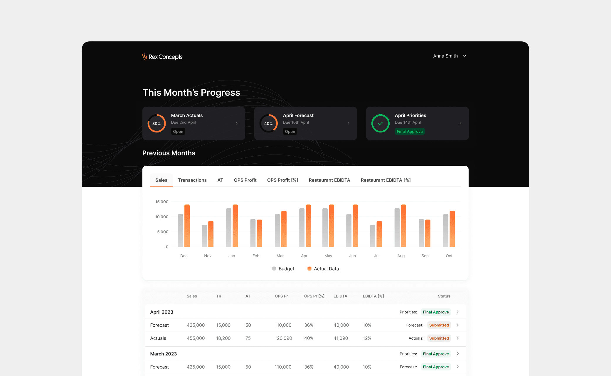 Rex Concepts runs Burger King and Popeyes restaurants in several countries in Europe. During our work together, one of the projects I did was a system allowing tens of managers to provide their supervisors with necessary data about all the restaurants they run - and the supervisors to make sure the business is running smoothly.